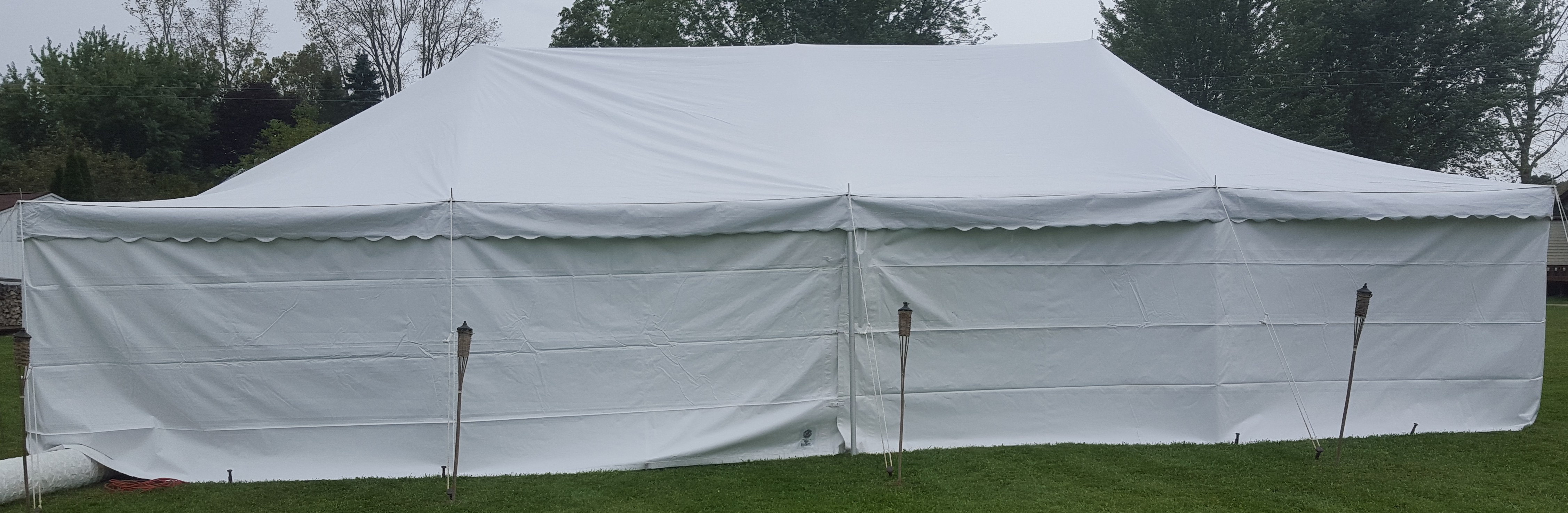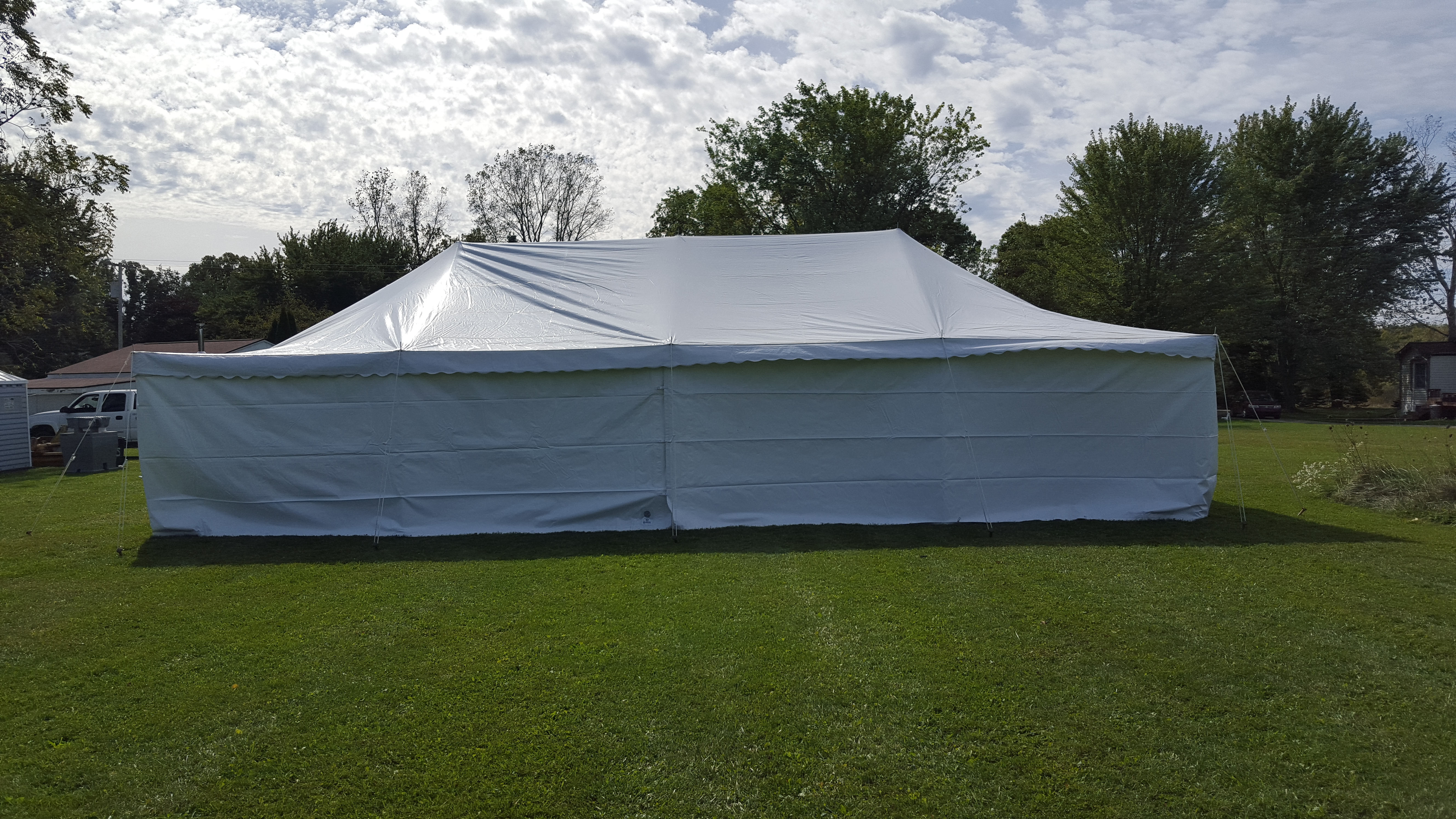 20x40 Pole Tent with Sidewalls Covering Canopy.
