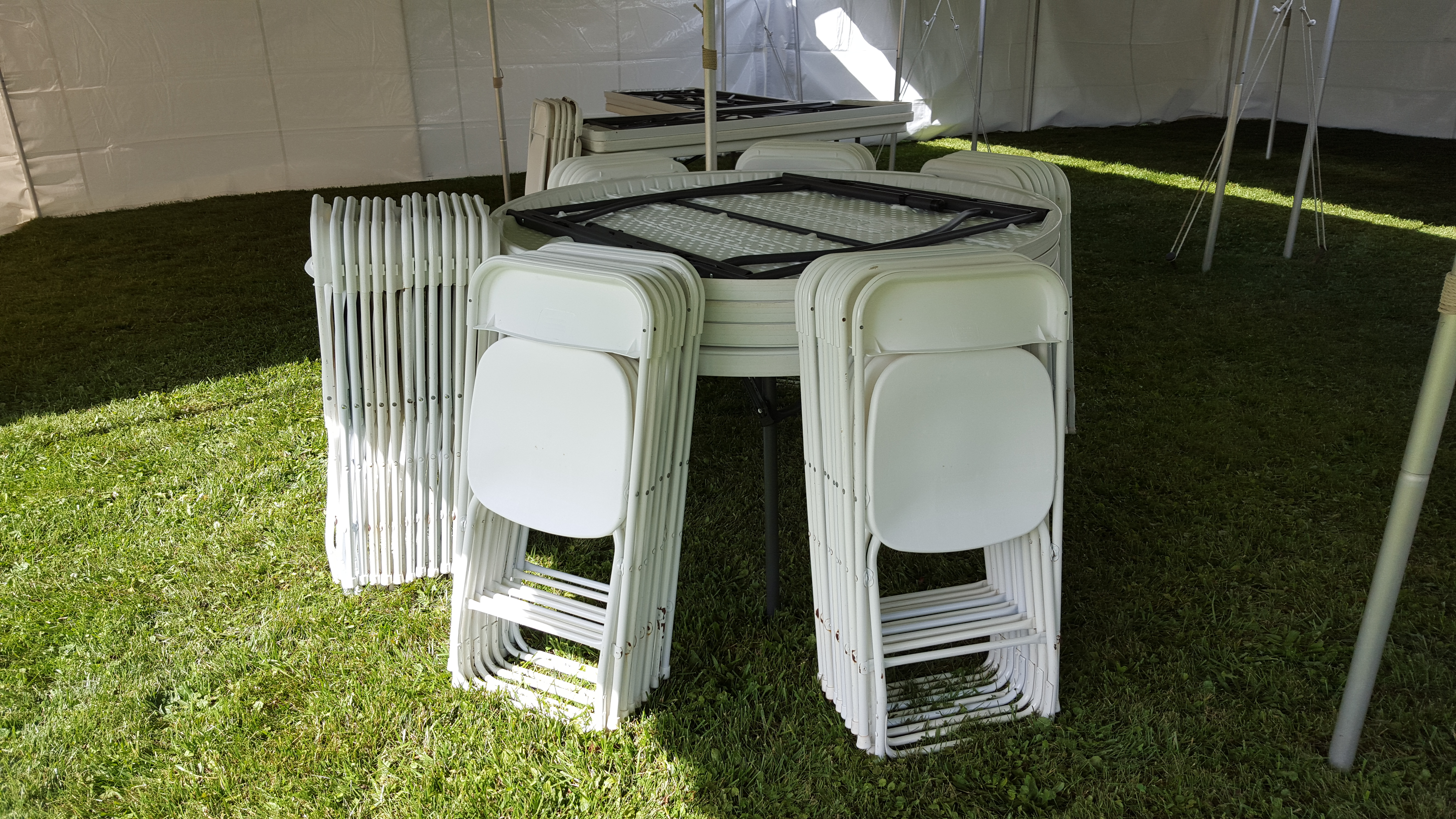 White Folding Chairs, 60 inch Round Tables & 6 ft Banquet Tables